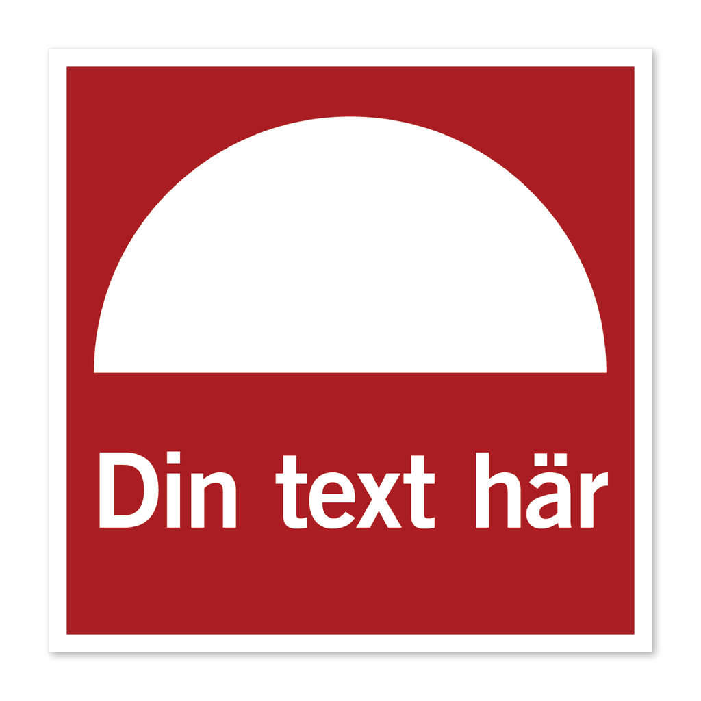 Skylt där du kan lägga till din egen text. Skylten finns i aluminium (plan), plast, klisterdekal och som kantvikt aluminium för stolpmontage. Möjlighet finns att lägga till dubbelhäftande tejp eller skruvhål som fästmetod på skyltarna i aluminium (plan) och plast.