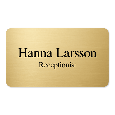 Ge ett proffsigt första intryck med våra namnskyltar i slitstark gravyrplast. Skylten kan beställas med nålfäste eller ett praktiskt magnetfäste som enkelt fästs på tröjan utan att lämna märken.