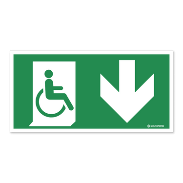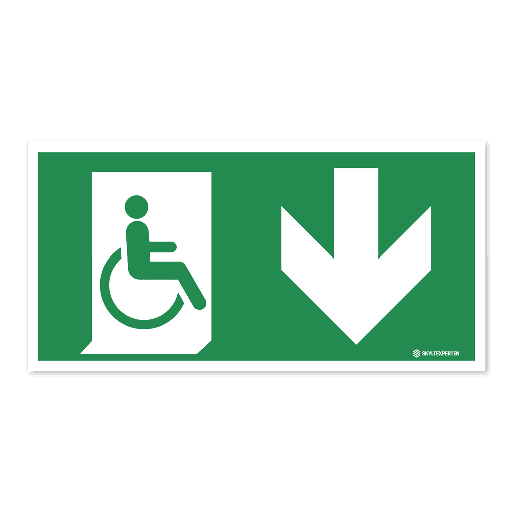 Nödutgångsskylt med rullstolssymbol – Pil ned