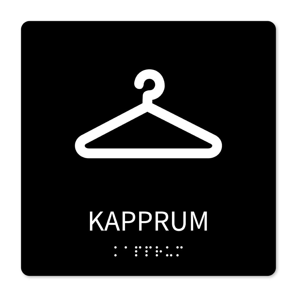 Skylt för kapprum med taktila detaljer och braille (punktskrift).