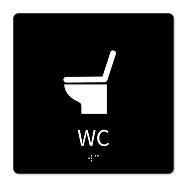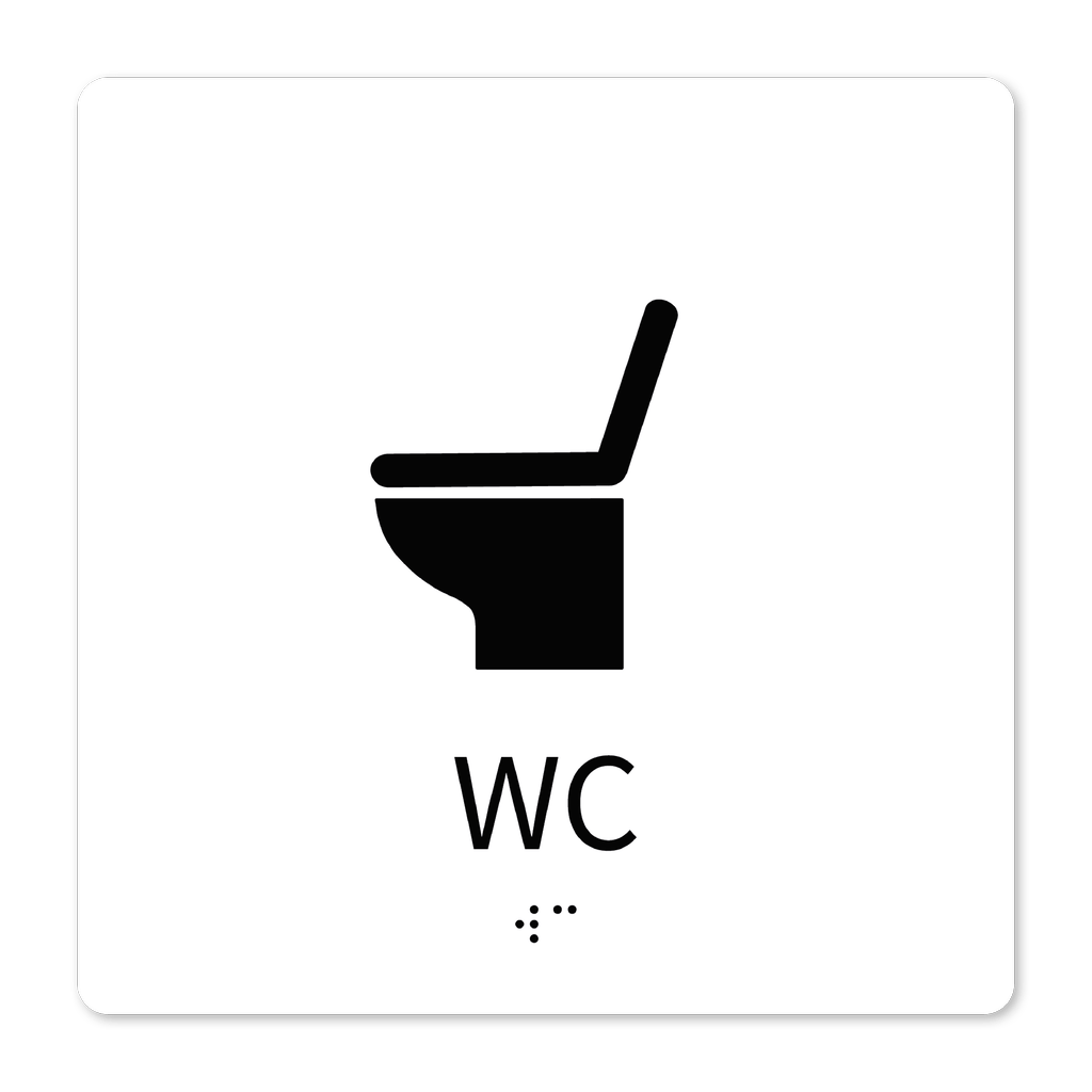 Toalettskylt med taktila detaljer och braille (punktskrift).
