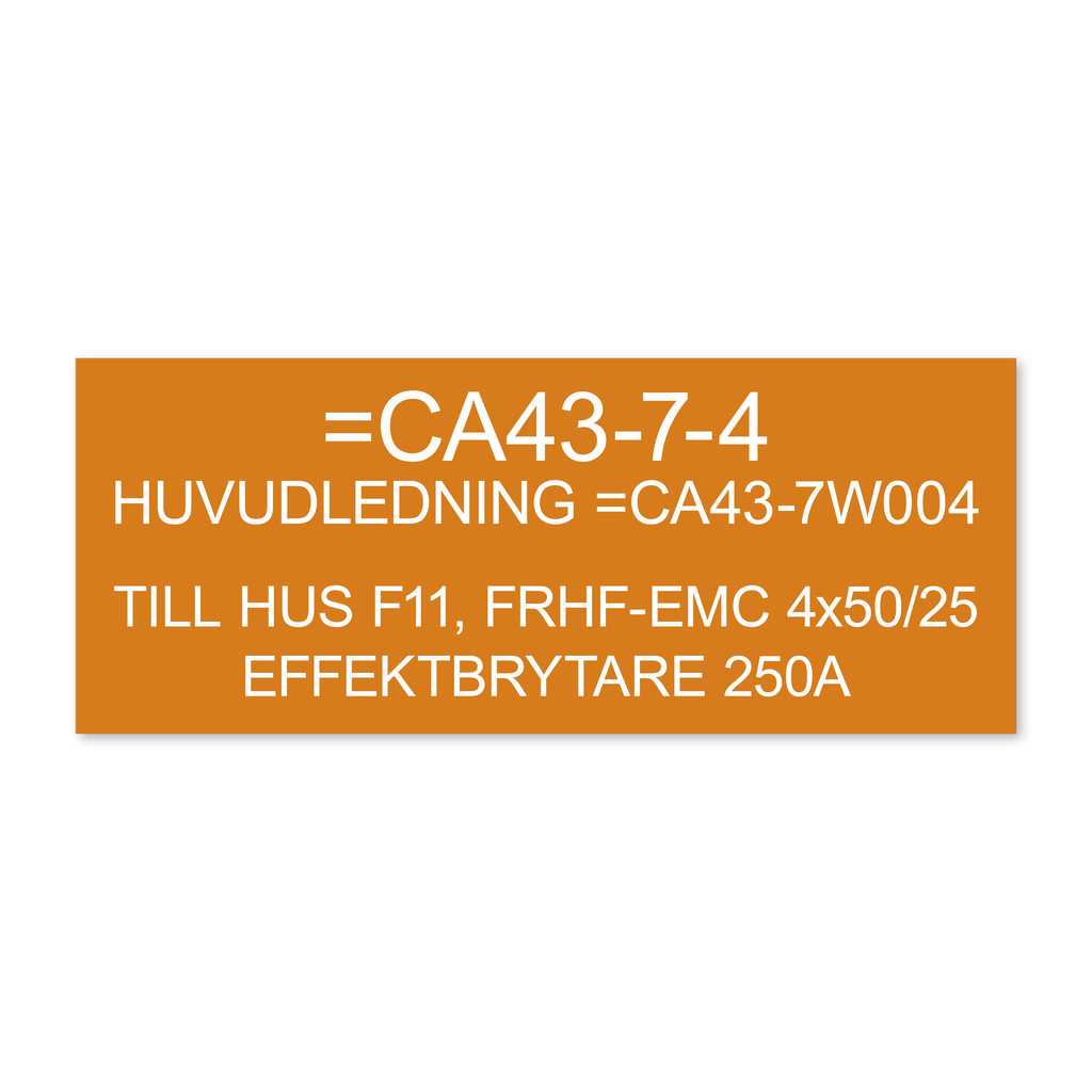 Våra märkskyltar tillverkas i slitstark 1,6 mm gravyrplast med hög precision i CO₂-laser, vilket ger tydliga och hållbara texter. De används ofta för att märka upp eluttag, ventilation, VVS-installationer och andra tekniska miljöer där tydlig information är viktig.