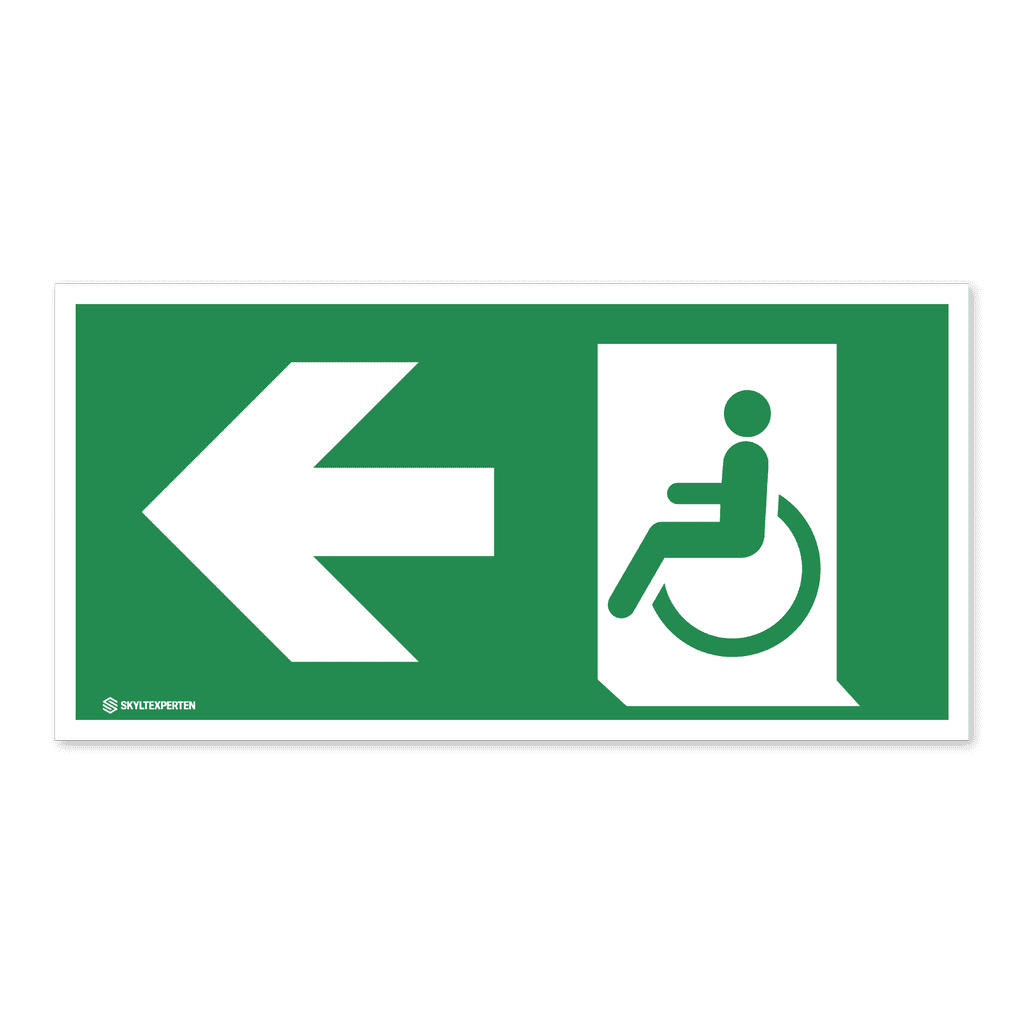 Startsida Nödutgångsskylt med rullstolssymbol – Pil vänster