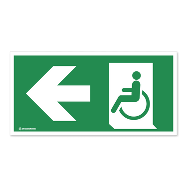 Nödutgångsskylt med rullstolssymbol – Pil vänster