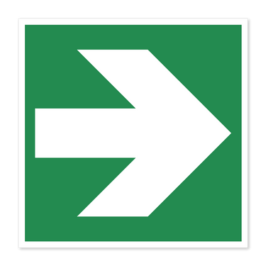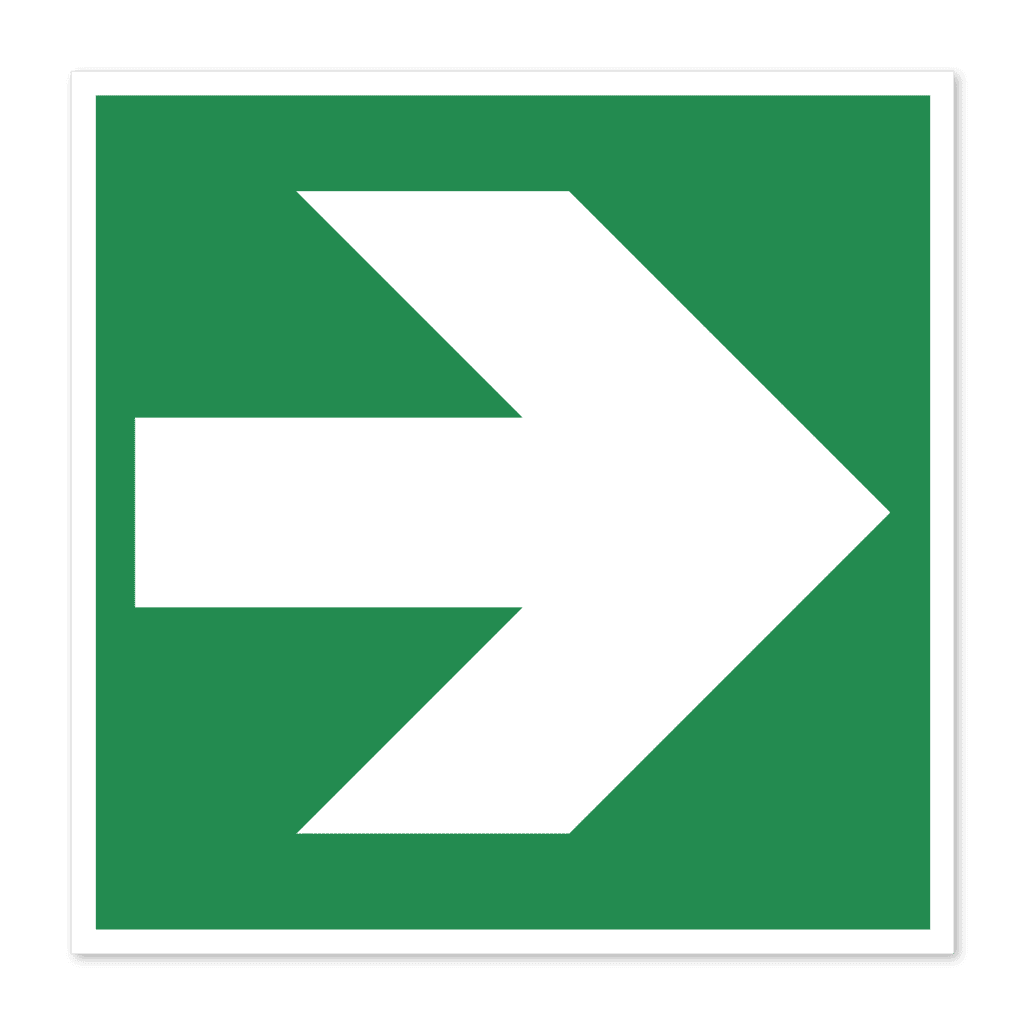 Skylt med Riktningspil-symbol. Skylten finns i aluminium (plan), plast, klisterdekal och som kantvikt aluminium för stolpmontage. Möjlighet finns att lägga till dubbelhäftande tejp eller skruvhål som fästmetod på skyltarna i aluminium (plan) och plast.
